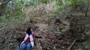 Di kaveling nomor 18, secara umum singkapan yang ideal lumayan sulit ditemukan, karena pada kondisi lapangan menunjukan tata guna lahan yang sudah digunakan untuk perkebunan jagung dan hutan jati. Sehingga singkapan yang kami temui bisa dinilai kurang ideal, hanya berbentuk seperti boulder dan dibeberapa tempat ditemui koluvial dan aluvial. Hal ini menjadi tantangan tersendiri untuk dapat mengambil data se-representatif mungkin. Namun dibalik dengan kekurangan tersebut, kaveling pemetaan ini masih dapat dilakukan pengambilan data dengan baik namun harus dengan ketelitian tinggi. Dari kegiatan pemetaan yang kami lakukan, didapatkan pada kaveling 18 dibentuk oleh morfologi perbukitan kuesta, perbukitan antiklin terdenudasi dan punggungan blok sesar. Dari unsur litologi, disusun oleh 4 satuan litologi, yaitu batupasir, perselingan batupasir dan batugamping kristalin, batugamping kristalin, dan napal sisipan wackestone. Satuan tersebut menunjukan urutan stratigrafi dari yang paling tua. Ditemukan juga beberapa struktur seperti kekar gerus, sesar geser sinistral, dan sesar naik. Sewaktu melakukan pemetaan, kami juga menemukan beberapa geomorfologi yang menarik, yaitu terdapat punggungan blok sesar yang bernama Gunung Katong yang tersusun oleh batugamping kristalin. Dalam cerita masyarakat setempat, Gunung tersebut disebut sebagai “Keraton” dan banyak hal tentang supranatural. Banyak mitos yang mengatakan di Gunung tersebut terdapat siluman harimau, ular besar, sering tercium bau dupa dan bunga kuburan. Beberapa orang mengatakan juga bahwa Gunung tersebut merupakan bekas peradaban kuno di masa majapahit, karena memang pernah ditemukan beberapa penemuan seperti artefak kuno. Fenomena ini pernah diangkat dalam cerita arkeologi yang diunggah di kanal youtube dengan judul “Jejak Tuhan Kalang di Gunung Katong Bangilan, Tuban”. Hal ini menjadi sangat menarik untuk penelitian para arkeologi. Namun jika ditinjau dari sisi geologi, Gunung tersebut terbentuk dari pengangkatan batugamping kristalin oleh sesar naik sehingga terbentuk seperti punggungan. Jejak sesar naik tersebut juga kami dapatkan sewaktu melakukan pemetaan berupa offset rekahan dengan adanya bidang sesar yang jelas.