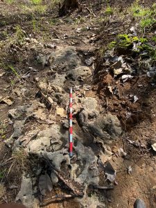 Selain variasi litologi, area pemetaan memiliki fitur geologi lokal yang penting dari sisi struktur maupun potensi sumber daya. Antiklin menjadi struktur dominan, berupa lipatan berbentuk punggungan dengan lapisan tertua di bagian tengah. Struktur ini merekam peristiwa deformasi tektonik masa lalu yang memengaruhi susunan stratigrafi dan distribusi litologi di wilayah tersebut. Keberadaan antiklin ini juga berpotensi memengaruhi pola pengaliran air tanah serta menjadi penentu persebaran singkapan di permukaan. Fitur struktural lainnya adalah Sesar geser sinistral yang berpengaruh terhadap pola retakan batuan, kestabilan lereng, dan kemungkinan menjadi jalur migrasi air bawah tanah. Identifikasi sesar ini sangat penting, baik untuk keperluan akademis maupun dalam perencanaan pembangunan infrastruktur.